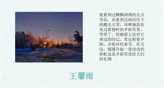 IAS社团是一个以演讲为主的社团,培养大家的口才,学习言行礼仪。此次比赛共有24位社员积极参加,社员们捕捉冬季美景,拍摄图片并配文字描述,这不仅锻炼了社员们的语言表达能力更丰富了社员们的业余生活。