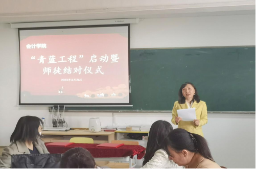 百年大计,教育为本。教育大计,教师为本。会计学院在师资培养方面一直秉承着“以老带新”的优良传统,为充分发挥我院老教师的“传、帮、带”作用,建立起促进青年教师专业成长的长效机制,会计学院制定了“青蓝工程”师徒结对实施方案,并于4月26日下午,在教学楼A303隆重举行了“青蓝工程”启动暨师徒结对仪式。该仪式由副院长宣胜瑾主持。