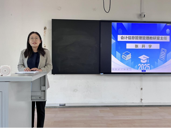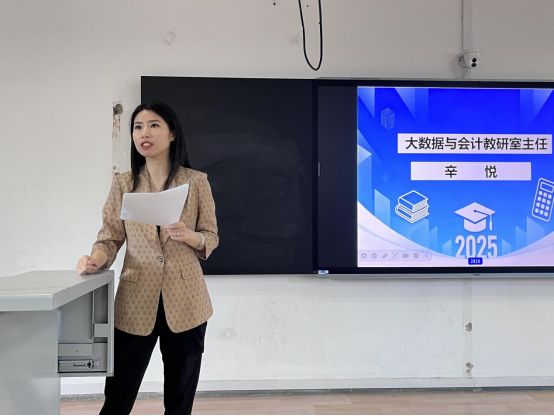 会计教研室主任兼会“技”协会总教练辛悦老师首先以大数据与会计专业教研室主任的身份,介绍了该专业的定位和目标。她强调,大数据与会计专业是传统会计与现代数据技术的深度融合,旨在培养具备数据分析能力的新型会计人才。专业课程涵盖会计学原理、大数据技术应用、企业内部控制实务等内容,强调跨学科知识的整合与应用。作为会“技”协会总教练,辛老师还特别介绍了会“技”协会的宗旨以及下设9个社团的培养技能,并重点介绍了协会举办的技能竞赛、行业讲座和志愿服务等特色活动,并强调,这些活动为学生提供了拓展视野、锻炼能力的平台,也增强了学生的社会责任感。她表示,会“技”协会各社团教练老师会不断激发学生的潜能,鼓励同学们积极参与实践活动,提升自身竞争力。