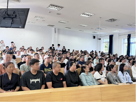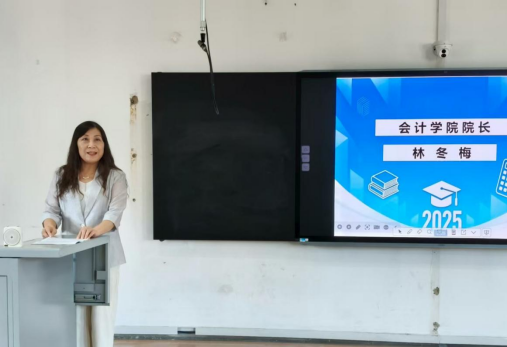 首先由林冬梅院长讲话。她简要回顾了学院的发展历程与取得的成就,强调了学院始终秉持“立德树人”的根本任务,以培养高素质、复合型高技能财经人才为己任。她指出,在当前科技革命和产业变革的浪潮下,学院所设专业前景广阔,同学们的选择是富有远见的。林院长对家长提出了殷切期望:一是重视孩子学业进展和职业规划;二是鼓励孩子生活独立与自我管理;三是提供孩子情感支持与沟通交流;四是加强孩子价值引导与品格修炼。林院长特别强调了家庭教育的重要性。林院长表示,学生的成长成才需要学校、家庭、社会形成合力。她希望家长们能持续关心孩子的成长,多与孩子沟通,了解他们的思想动态;多与辅导员、老师联系,掌握其在学校的表现;多给予鼓励和支持,做孩子坚强的后盾。学院也将通过多种渠道与家长保持密切沟通,共同为学生的健康成长保驾护航。