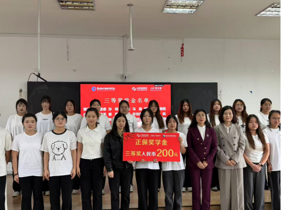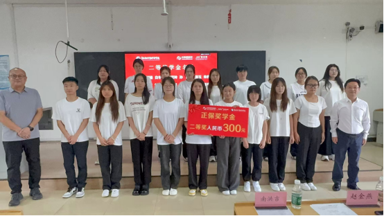 赵金燕副书记、专业带头人梁雪及郭宜玘经理颁发三等奖学金
