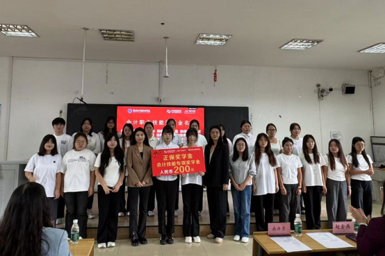 为了表彰2023级和2024级正保校企班的优秀学生,校企双方辅导员制定了《会计学院校企合作班奖学金评定办法》,通过对学生一学年学习与工作成绩的综合量化考评,校企共同评选出一等奖学金获得者11名,每人奖励500元;二等奖学金19名,每人奖励300元;三等奖学金23名,每人奖励200元;会计技能奖学金22名,每人奖励200元;杰出贡献奖学金19名,每人奖励100元;企业老师为同学们颁发了奖学金,学校老师为他们颁发了证书以资鼓励。