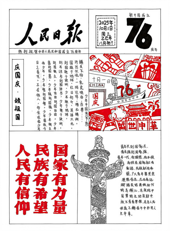 盛世华诞,举国同庆。为庆祝中华人民共和国成立76周年,深入传承红色薪火,引导学生厚植爱国情怀,会计学院以“墨韵绘国潮·红心贺华诞”为主题举办国庆主题创作活动,通过绘画创作、书法临摹等多元艺术形式,引领学生们踏入祖国辉煌成就的壮丽画卷,点燃他们内心深处的爱国烈焰,培育他们的民族自豪感与责任感,让爱国情怀在校园中如繁花绽放。