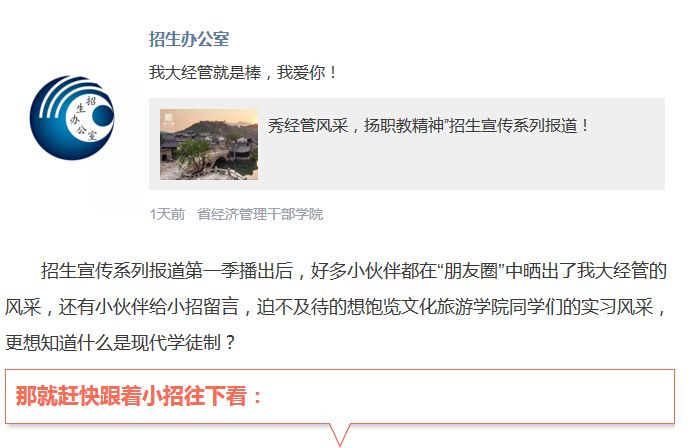 上一条:练本事、促成长,技能大赛展风采 下一条:“秀经管风采,扬职教精神”招生宣传系列报道开播啦!