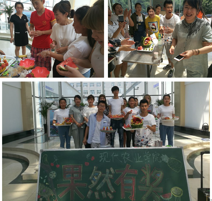 为激发学生学习兴趣,将创新意识与创新能力融入到专业教学中,现代农业学院在高新校区办公楼一楼大厅举办了“果”然有奖水果拼盘大赛,活动得到了建筑工程学院、文化旅游学院、机电工程学院领导和老师的一致好评。