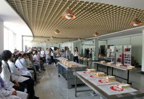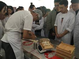 为了贯彻落实全国教育大会和《国家职业教育改革实施方案》,按照《关于深入开展2019年吉林省职业教育宣传月活动的通知》(吉教职成办函[2019]9号)要求,持续深化专业建设,培养学生工匠精神,2019年5月8日,食品药品工程学院邀请长春喜家德虾仁水饺技能训导师走进校园,在高新校区食品加工实验室开展了校企“面对面”活动。参加本次活动的有食品药品工程学院院长刘春娟,副书记杨玫,教研室主任和专业教师,以及2017级全体学生。