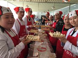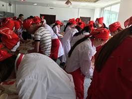 本次活动以弘扬工匠精神、营造劳动光荣为主旨。首先,由喜家德虾仁水饺人事部张经理介绍企业历程及未来发展目标;其次,同学们观看企业一级面案师傅的精彩展示,并进行现场教学;最后,由同学们亲自体验包饺子的过程,依据面和馅比例、饺子形状等指标评出优秀同学,企业提供一定的奖励,整个活动在轻松愉悦的氛围中结束。