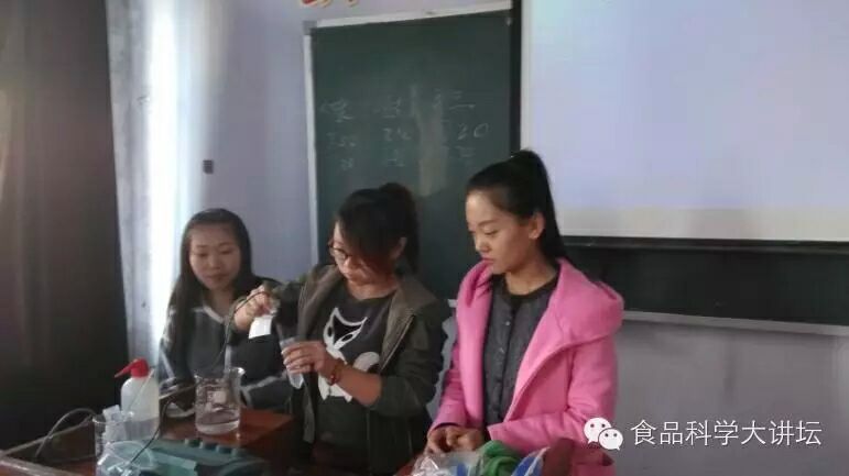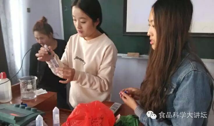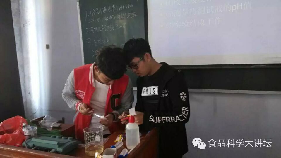 在水的pH测定相关理论知识讲授后,学生分组实验,动手操作。