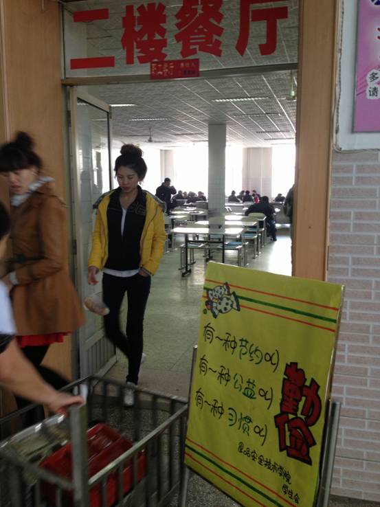 在学生会一行人的倡导下,同学们纷纷表示:杜绝浪费,从我做起。要尊重劳动、物尽其用,争做勤俭节约新风尚的传播者、示范者和实践者。这次用餐结束后,同学们自觉有序的把吃光了的空盘放到指定位置。
