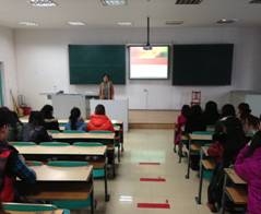 延续上学期的讲座,此次为同学们讲课的华正的高管细致地为同学们讲解企业各部门的职能,并指导同学们做职业规划。