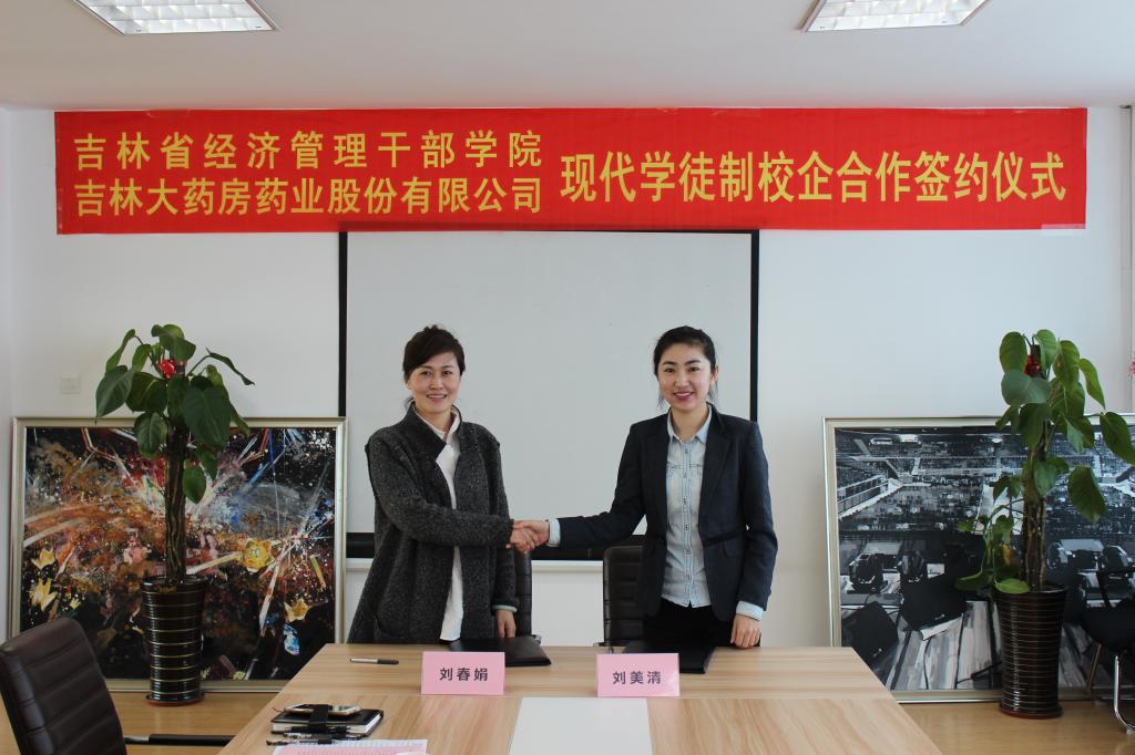 现代学徒制是我国当前职业教育改革发展的重点方向,是职业教育产教融合、校企合作培养人才的重要途径。为深化产教融合,推动职业教育高质量发展,吉林省经济管理干部学院于3月29日,与亚泰集团吉林大药房药业股份有限公司举行了现代学徒制校企合作签约仪式。参加此次签约仪式的有教务处处长王琦、招生就业处处长元克、食品药品工程学院刘春娟院长、周雪娟书记和吉林大药房人力资源部刘美清经理、于中洋主管,会议由刘春娟院长主持。
