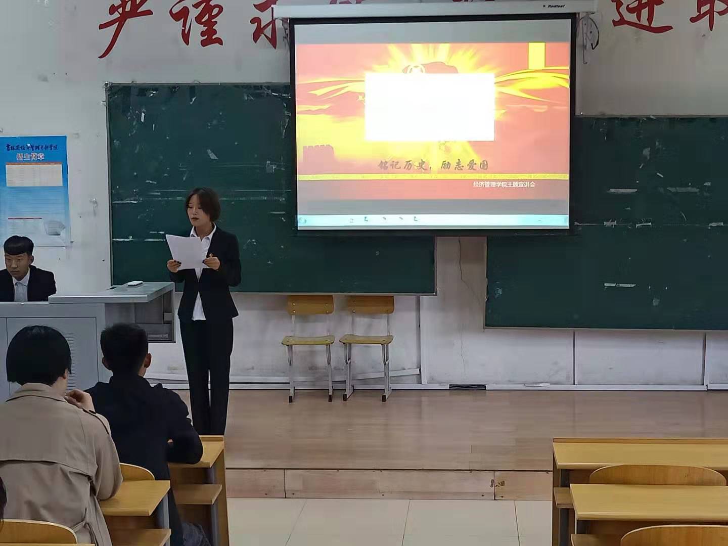 为纪念“九一八”事变爆发88周年,经济管理学院团总支于2019年9月18日在A105教室组织各班班级干部开展了“铭记历史,励志爱国”主题团日活动。