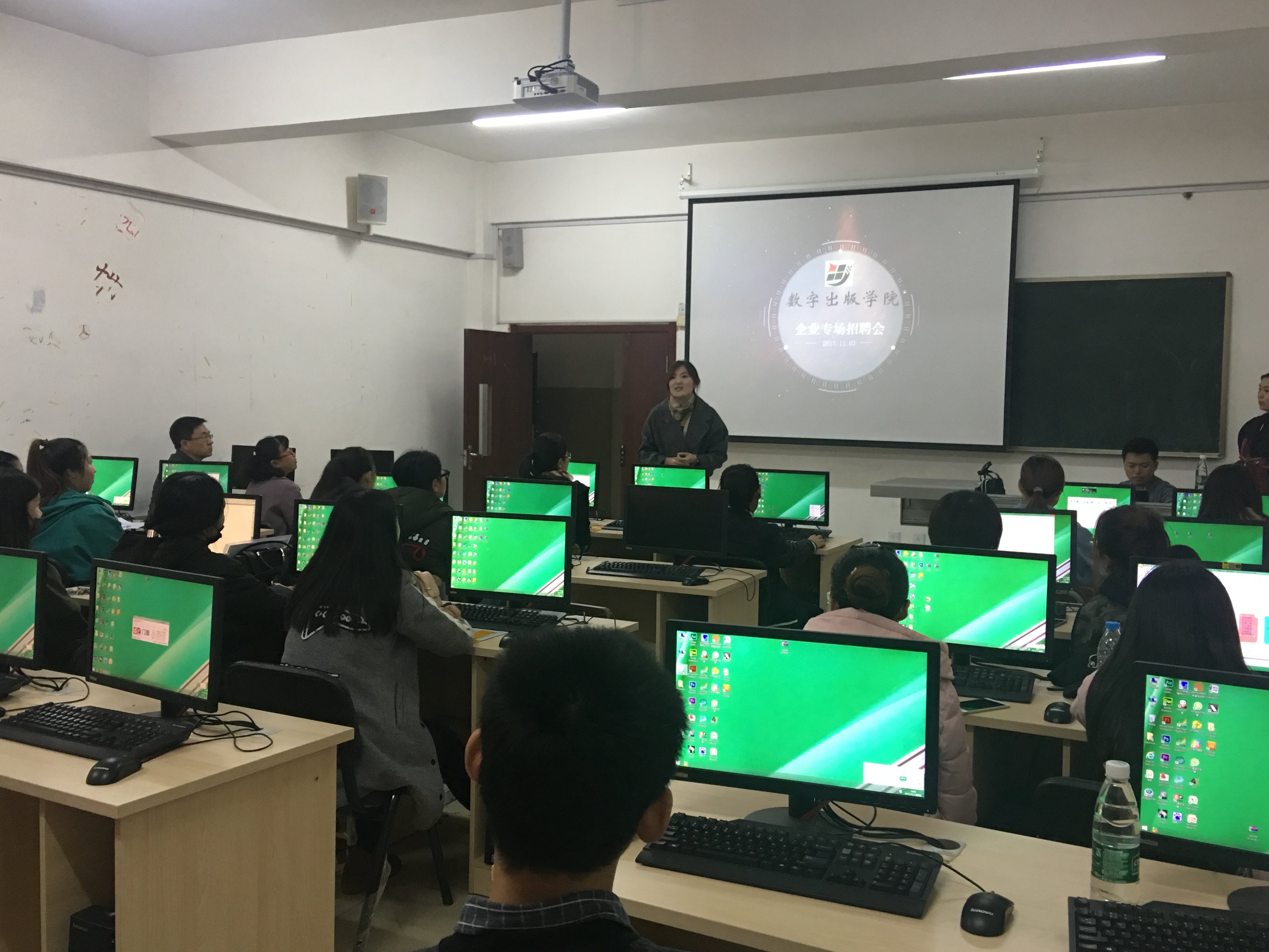 经过学校三年的教育与培养,2015级的同学们即将走向社会,开始自己的求职实习之旅。为了给同学们增加更多的实习就业机会,充分了解市场需求与专业发展,数字出版学院积极与企业加强沟通合作,于2017年11月3日13:00在学院前进校区B教学楼511教室召开针对2015级数字出版专业、数字媒体技术专业学生的企业专场招聘会。此次进行招聘的企业为长春市升科行投资咨询有限公司广告部,招聘面试的岗位为策划人员、平面设计人员。数字出版学院院长刘庆红教授、党总支书记孙成雨、信息技术教研室主任刘先花、教师張飛飛参加了此次会议。