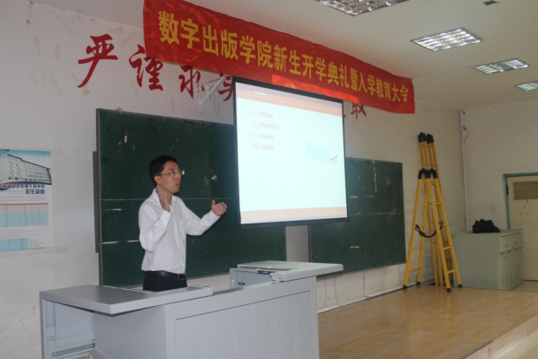 秋日美丽的校园迎来了数字出版学院2016级151名新生,青春的脸庞将从这个9月起收获成长、启航梦想。 2016年9月7日10:00时,数字出版学院在我院A教105阶梯教室召开了新生开学典礼暨新生入学教育大会。大会由数字出版学院副院长邓又明副教授主持,数字出版学院院长刘庆红教授、党总支书记田小龙同志、数字出版学院全体辅导员以及各专业带头人出席了大会。