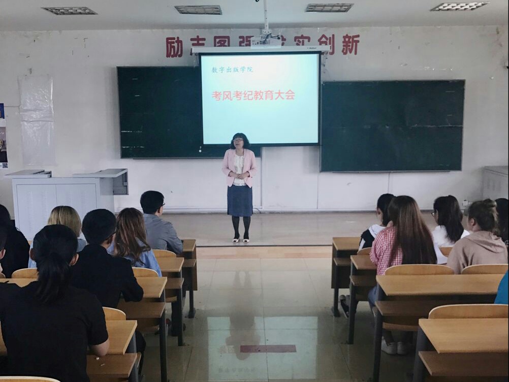 为进一步严肃考试纪律,树立诚信考试风气,数字出版学院于6月9日中午在院部第一教学楼205教室开展“考风考纪教育大会”,分院院长刘庆红、党总支书记孙成雨、团总支书记赵馨彤及大一全体学生参加会议。会场秩序井然,同学们以非常严肃认真的态度接受了考风考纪教育与诚信做人的教育。