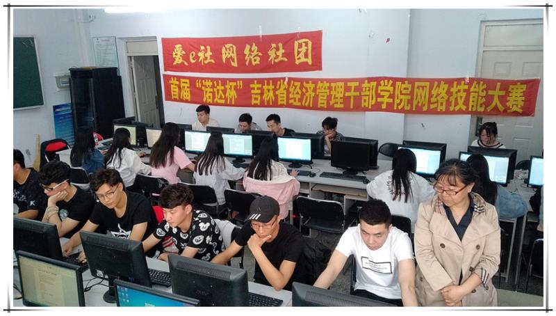 2018年5月14日晚五点半,信息传媒学院在院B教407实验室举行了首届“诺达杯”吉林省经济管理干部学院网络技能大赛初赛。本次大赛是由信息传媒学院“爱E社网络社团”与吉林省诺达网络技术有限公司联合举办的,是“爱E社网络社团”在本学期的重要活动之一。