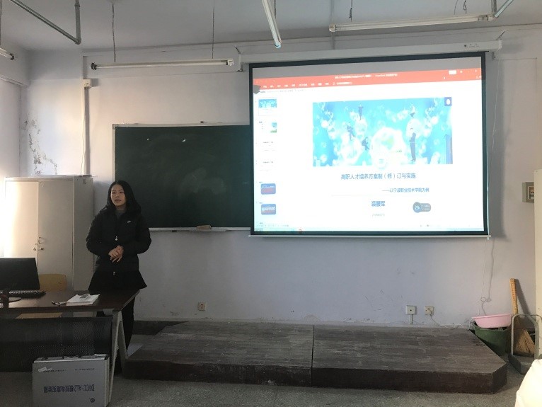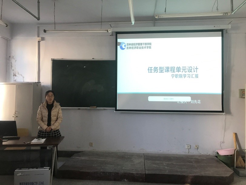 然后刘先花老师从有效课堂、任务型课程单元设计、课堂教学、我的课堂教学以及我的感想五个方面进行了以“任务型课程单元设计”为题的汇报。刘老师首先说明了何为有效课堂,并指出任务型课程单元设计的载体可以通过项目教学、问题教学、案例教学以及活动教学来实现。然后以在宁波职业技术学院的一节英语课为例与各位老师分享了上课的感想,同时向各位老师展示了自己的一节《计算机应用基础》课程设计。最后刘老师表示,通过培训学习,感受到了宁职院改革决心很强,从领导、学院、系部、专业到教师群策群力,共同努力,并希望信息化教学手段能尽快在我分院教师普及。
