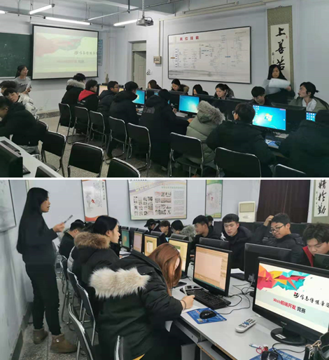 为了培养和提高学生的创新精神、协作精神和Web前端开发能力并为2020年吉林省职业院校技能竞赛“Web前端开发”赛项选拔参赛选手,信息传媒学院于2019年12月2日17:00时在院部B408教室举办了“Web前端开发”竞赛。