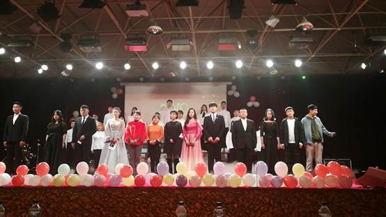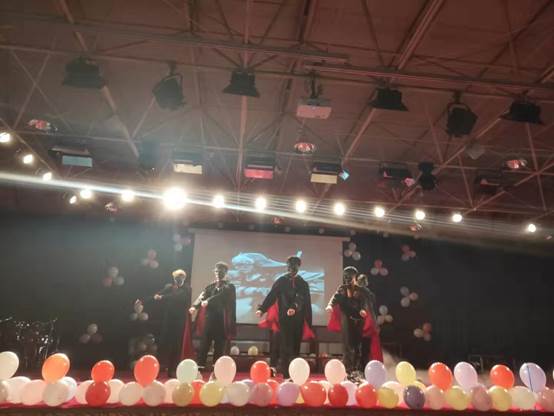 由张耘玮学长和朱晗带领大学生舞蹈团的同学们所跳的“我的英雄梦”更是舞动出了青春的活力,展示出我院丰富多彩的校园生活;吉洪男同学的架子鼓表演气场全开;王帅和邓富元同学的吉他弹唱《都选C+不再犹豫》嗨爆全场;互动游戏环节“击鼓传花”更是把晚会气氛推向高潮。