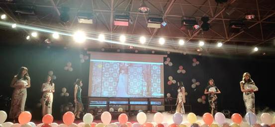 张婉莹同学带来的《红玫瑰》更是让同学们发出了尖叫,震惊全场,她独特的嗓音带动全场氛围让同学们为她送上了最热烈的掌声;由邓雨航学长和王鑫源学长为大家带来歌曲《其实》,他们的深情演唱触动了全场观众的心灵;大学生礼仪团带来的表演《礼仪之美》更是体现出了中华民族服饰大气和韵味,《青花瓷》曲一响,折扇一开,身穿旗袍的端庄淑女慢慢走向舞台中央,全然展示了大学生艺术团百花齐放的艺术氛围,同时也体现出了中华之美。