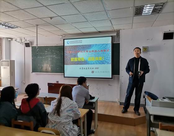 接下来,云宝公司的工程师刘轩老师站在企业的角度介绍了本专业的ICT主流专业技术和华为、华三、思科等世界知名ICT相关厂商、行业。刘轩老师结合网络专业行业的发展动态和自己的专业经验,对网络专业进行了详细分析,让同学们对所学专业有了新的认识。随后,刘老师结合实例,对网络行业相关职位和未来就业岗位进行了剖析,更加坚定了同学们对本专业的兴趣,刘老师还希望同学们对未来的发展明确了方向,大家受益匪浅。