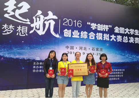 2016年9月24至25日,由教育部高等学校国家级实验教学示范中心联席会经管学科组主办,河北经贸大学承办的“学创杯”2016年全国大学生创业综合模拟大赛全国总决赛在河北经贸大学落下帷幕。来自全国63所本科院校和39所高职院校的代表队进入总决赛。由会计学院杨鑫、迟卓、翟昌琪三位同学组成的“勇往直前”代表队经过激烈的角逐,获得了全国总决赛二等奖,林冬梅、赵金燕两位老师因为指导大赛获优秀指导教师奖。这一成绩的取得,是会计学院长期坚持应用型人才培养,社团辅导训练,积极探索创新创业教育新方法,不断提高学生专业实践能力的又一成果。