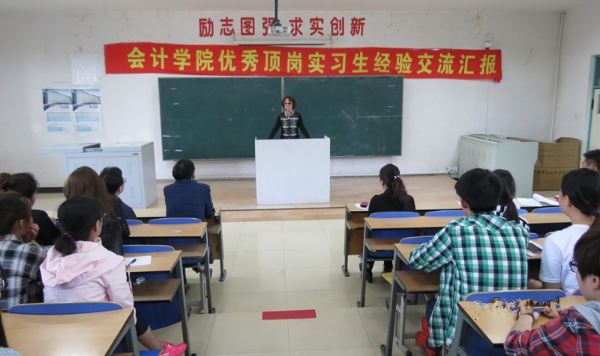 顶岗实习经验汇报会是会计学院实习与就业安置一体化实践探索的重要内容之一,近年来,会计学院通过与万通、修正和畅捷通等行业龙头企业的合作,每年向合作企业推荐以就业为目标的顶岗实习学生近200人,遍布全国30多个省份。顶岗实习时间为1年,而合作育人为专业人才培养的三年全过程。这种深层次的全程合作,不仅有效地解决了会计专业群实习难的教改瓶颈,更通过从入学到就业不同阶段的专业人才培养的实际需要,采取不同形式的合作方式,帮助学生做好职业生涯的规划,职业能力的训练,顶岗实习与就业岗位的双向选择以及后续的跟踪服务,在岗位实践中探索双主体育人,有效地提高了人才培养质量,为区域经济的发展做出了突出贡献。