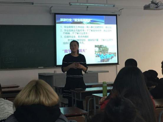 2016年11月23日下午3点,在高新校区307教室,应我院旅游管理教研室邀请,长春文化国际旅行社导游部崔锦玉经理,文化旅游学院11级旅游管理专业优秀毕业生任雪婷同学(专职出境领队)与16级旅游管理专业的同学欢聚一堂,畅谈旅游学子美好未来,旅游管理教研室全体教师参加。