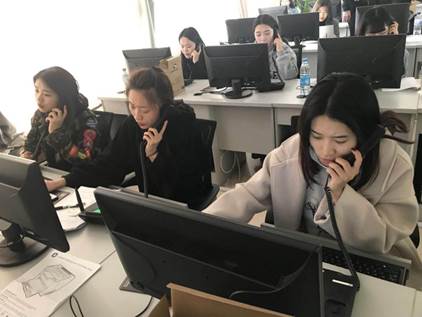 实训前先由海州王丽丽部长进行为期两天的展会背景、参展行业背景及现状介绍、话术培训,再由学生进行电话营销实战。实训中完全按照企业工作情景展开:每天拨打电话前,先开会总结昨天的问题,然后纠正问题,鼓励学生热情耐心细致完成营销工作;制定每天拨打电话数量表;每三天定期进行信息反馈……。学生们要在开展前完成50000条信息的电话营销,人均完成2000条,两周内完成,学生们牺牲了清明假期在学校参加实训,可谓是时间紧,任务急。