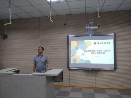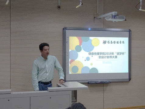 蔡院长首先对信息传媒学院各参赛团队的同学们所具有的高度参与热情与充分赛前准备给予了表扬,他表示开展学院“逐梦杯”创业计划书大赛既是响应国家“大众创业,万众创新”的号召,又是以增强大学生创新、创业意识和能力为出发点,以大学生创业实践为导向的一次实践比赛。同时,蔡院长还向学生们介绍了未来加入创新创业学院的学习机制,并预祝各位参赛选手在比赛中获得好的成绩。