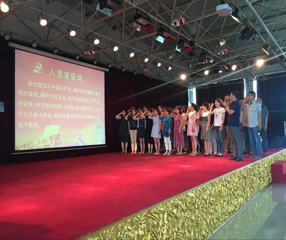面对鲜红的党旗,副书记宋玉红、院长杨卫辉及全体党员举起右拳,重温入党誓词。字字坚定,句句铿锵有力,代表了我们作为一名共产党员的决心:牢记入党誓词、忠于、拥护中国共产党,不忘初心。