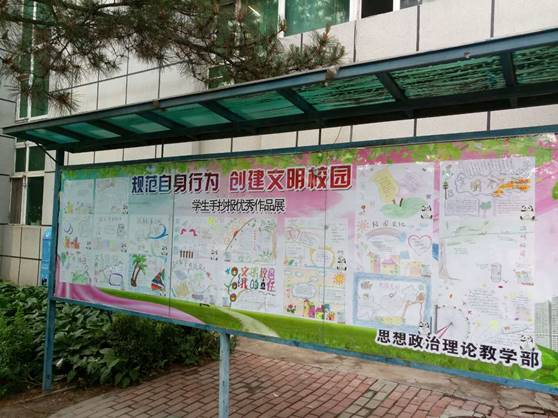 为创建文明校园,增强师生们的文明意识,养成良好的行为习惯,丰富校园文化生活,充分发挥学生的想象力,提高学生的动手能力,增强班级凝聚力,思想政治理论教学部举办了以 “规范自身行为 创建文明校园”为主题的手抄报比赛活动。