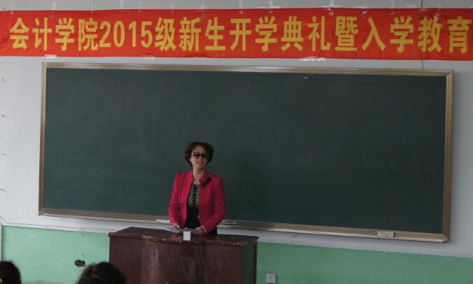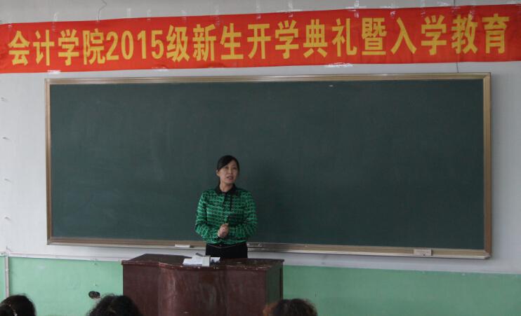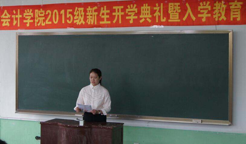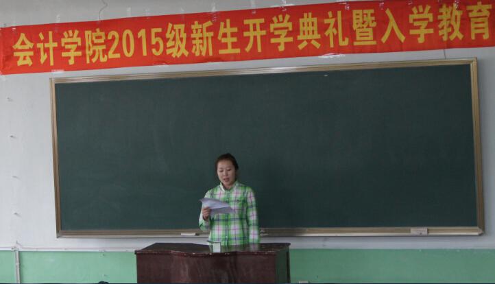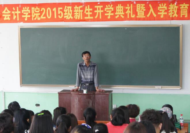 9月9日上午,会计学院在和平校区教学楼二楼阶梯教室隆重召开2015级新生开学典礼暨入学教育大会。参加此次大会的领导有院长李昕、党总支书记付杰、副院长林冬梅、党总支副书记南洪吉、学工干事闫萍,新生辅导员刘超、胡馨元及在校生代表, 2015级全体新生。