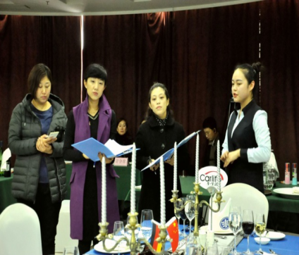 西餐宴会服务赛项是一项集主题设计和职业技能于一体,考察选手的西餐摆台、调制鸡尾酒和英语的口语表达能力的综合性比赛。在比赛中,我院选手表现突出,发挥出色,展示出较强实力。特别是西餐摆台动作规范、美观大方;调制鸡尾酒环节我院选手更是大放异彩,博得现场观众和裁判的阵阵掌声。获得一等奖的佟琳琳(指导教师:潘素华)在调酒环节获得满分;二等奖获奖者咸江澄(指导教师:黄平)的英式调酒动作既舒展又标准,既潇洒又规范,频获评委老师点头认可。