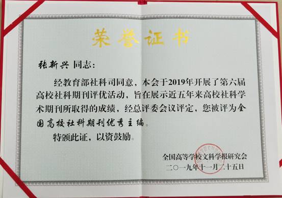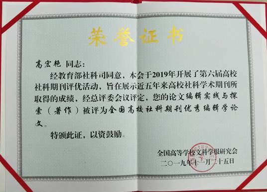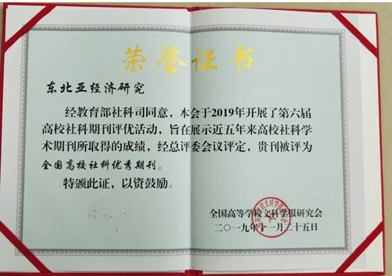 “‘双一流'建设背景下全国高校学术期刊的责任与使命学术研讨会”于20191125日至28日在广东肇庆学院召开,来自全国高校文科学报的编辑同仁共700多人参加此次大会,这是一次规模空前、学术纷呈的大会。教育部社科司出版管理处处长田敬诚,全国高校文科学报研究会理事长、《北京师范大学学报》主编蒋重跃,全国高校文科学报研究会副秘书长、《华南师范大学学报》主编王建平出席大会开幕式。全国高校文科学报研究会副理事长、《北京大学学报》主编程郁缀主持开幕式。开幕式之后,大会进行表彰。获得第八届全国高校文科学报玉笔奖、获奖期刊、获奖栏目、优秀主编、优秀编辑、优秀编辑学论著、优秀会务等的单位和个人接受颁奖。我院学报《东北亚经济研究》喜获优秀期刊奖,学报主编张新兴获优秀主编奖,学报编辑高宏艳获优秀编辑学论著奖(全国共5部论著获奖)。