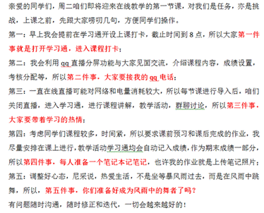 经济管理学院的学生们在上完第一天的网课后,给全体教师写了一封信,信上说:“虽然我们与老师相隔甚远,但是从进入课堂的那一刻开始,就深深感受到了老师们为了给我们呈现精彩的网络课程所做出的精心准备。谢谢老师的日夜钻研和不辞辛劳。”