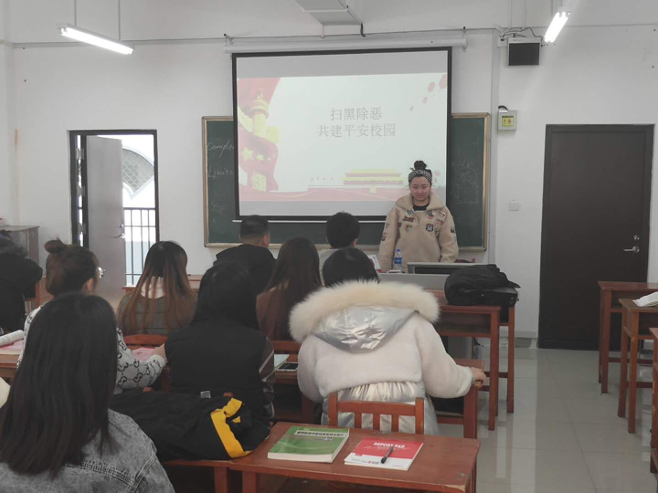 为了深入学习党的十九大精神,贯彻落实有关扫黑除恶专项斗争会议精神,确保校园和谐平安。我院于2019年3月11日组织各班开展“扫黑除恶,共建平安校园”主题团课。