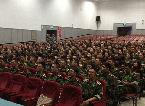 军事理论课是大学生军事训练的重要内容,同时也是此次军训的重要环节。军事理论教研室对本次军事理论课程进行了精心而详细的准备,安排刘闻、刘颖、张仲福、张琳等授课教师在课程当中讲授了国防的重要性,并对中国周边安全环境、中国武装力量、中国国防、国防和军队建设、国防动员、和国防法规等内容进行了详细讲解。深入分析了世界安全形势,提醒学生们在和平年代依然要树立居安思危的国防意识,博得学生们一次又一次的热烈掌声。各位教师们前沿的观点、严谨求实的授课态度让同学们受益匪浅。前进校区的同学还主动要求上军事理论课。除课堂学习,此次军训还要求学员进行相关知识的自学。