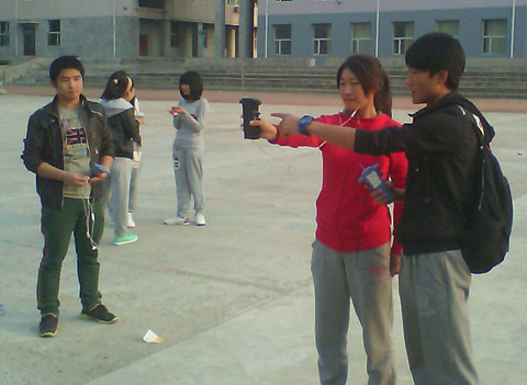 2012年10月12日,星期五,下午3点,在我院前进校区运动场,“猎狐俱乐部”在刘闻、张仲福老师组织带领下进行了第一次无线电测向训练。现场布置了4个短80信号源,由理论教学队长孙静宇讲解了短80测向机的构造、使用方法,1号至5号台的摩尔发报形式,单项—双向测向方法和双向—单项测向方法。新队员们的积极性都非常高,认真学习理论知识。老队员们也都耐心解答疑问。