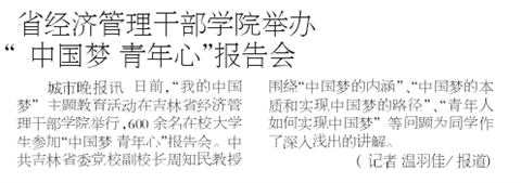 《城市晚报》对思政部主办“中国梦 青年心”报告会进行报道