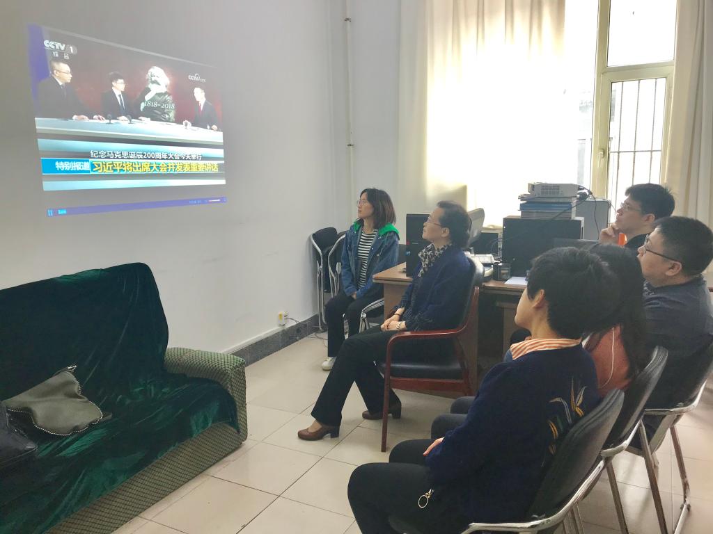 思政部党支部组织观看马克思诞辰200 周年纪念大会实况