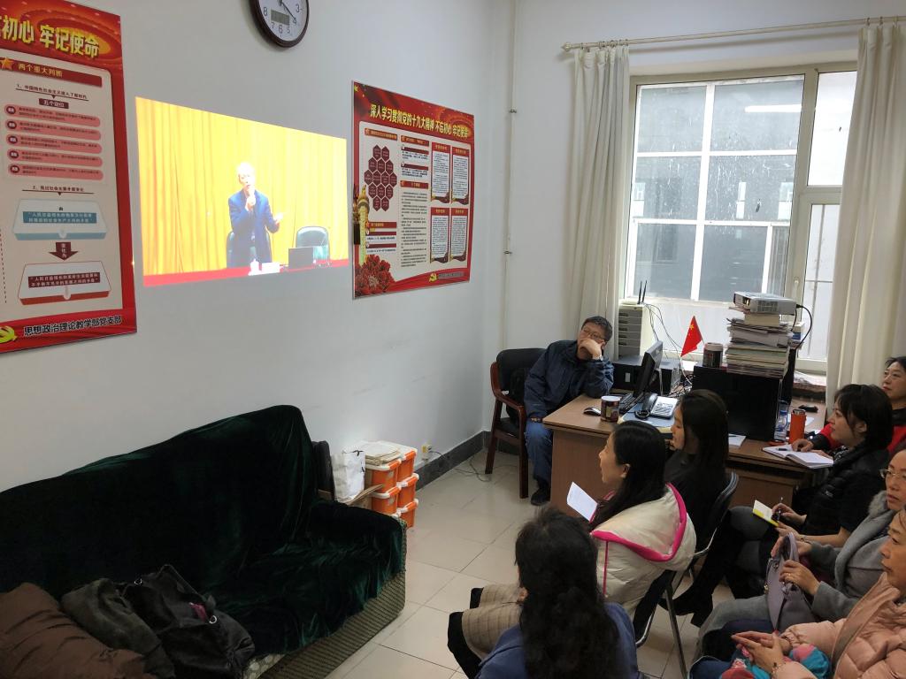 为深入学习习近平新时代中国特色社会主义思想,贯彻落实全国教育大会及全国师德师风建设工作会议精神,加强师德师风建设,引导教职工严格遵守师德规范、弘扬高尚师德,2019年11月13日下午,马克思主义学院组织全体教师进行“不忘初心 立德树人 做高素质‘双师型’好老师”专题网络课程培训的线下学习活动。集体观看了《做大学生健康成长的人生导师》曲建武事迹报告并进行研讨。会议由刘颖院长主持,马克思主义学院全体教师参加。